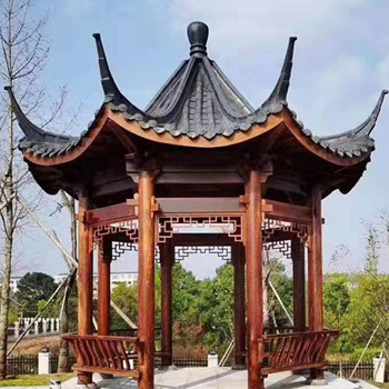 古建六角涼亭也叫古建涼亭,上面采用小青瓦,下面采用樟子松制作而成,整體美觀大方,具有仿古氣息。